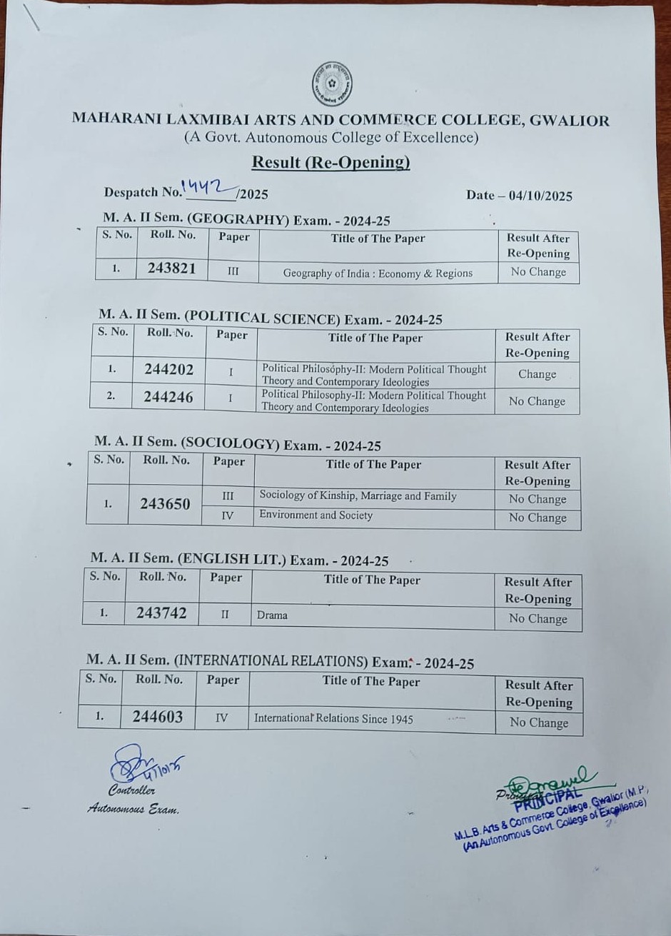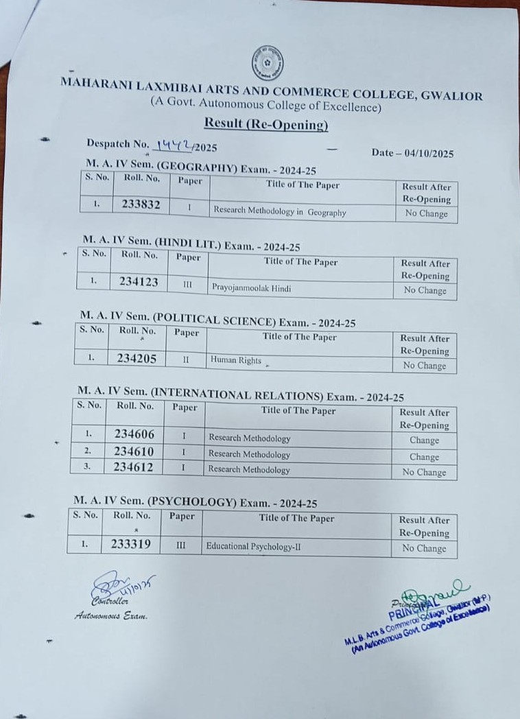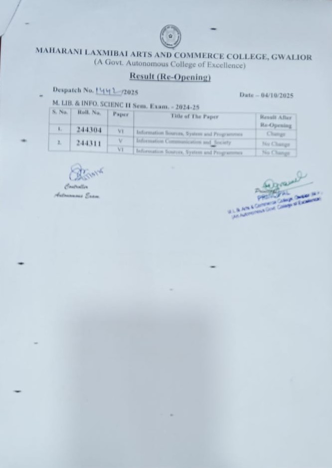 Maharani Laxmi Bai Arts and Commerce College Gwalior is one of the most prestigious Educational Institution of Northern India. Over a century old history of this great institution marks the various stages of its development and spread of higher education in Gwalior. more