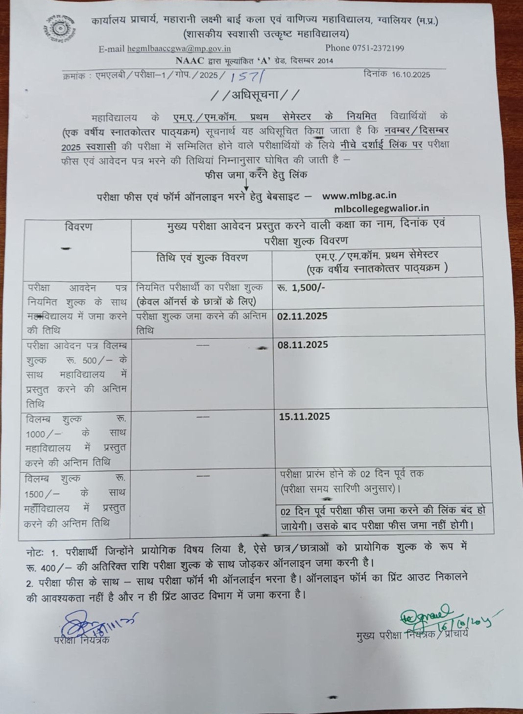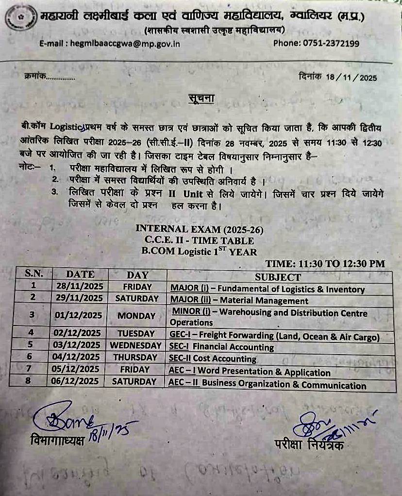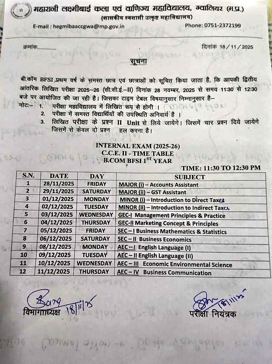 Maharani Laxmi Bai Govt. College of Excellence, Gwalior is one of the most prestigious Educational Institution of Northern India. Over a century old history of this great institution marks the various stages of its development and spread of higher education in Gwalior. The rulers of erstwhile Scindia state rendered a yeomans service by establishing this college in 1846 as Lashkar Madarsa. It was renamed in 1887 as “Victoria College” to mark the celebrations of Golden Jubilee of Queen Victoria. In 1957 its name was changed to “Maharani Laxmi Bai Arts and Commerce College” in the memory of that great, valiant and immortal freedom fighter, the Maharani Laxmi Bai of Jhansi who laid down her life on the sacred soil of Gwalior. In the year 1961, the Science departments were separated from this college and it was named as Maharani Laxmi Bai Arts & Commerce College.