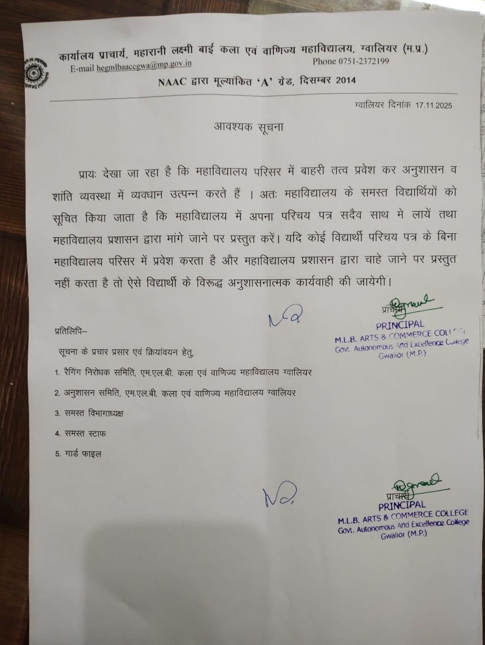 Keeping in view the glorious academic tradition of this college, the Govt. of Madhya Pradesh, Dept. of Higher Education declared it as an institution of Excellence in Higher Education from the academic session 2002-03.